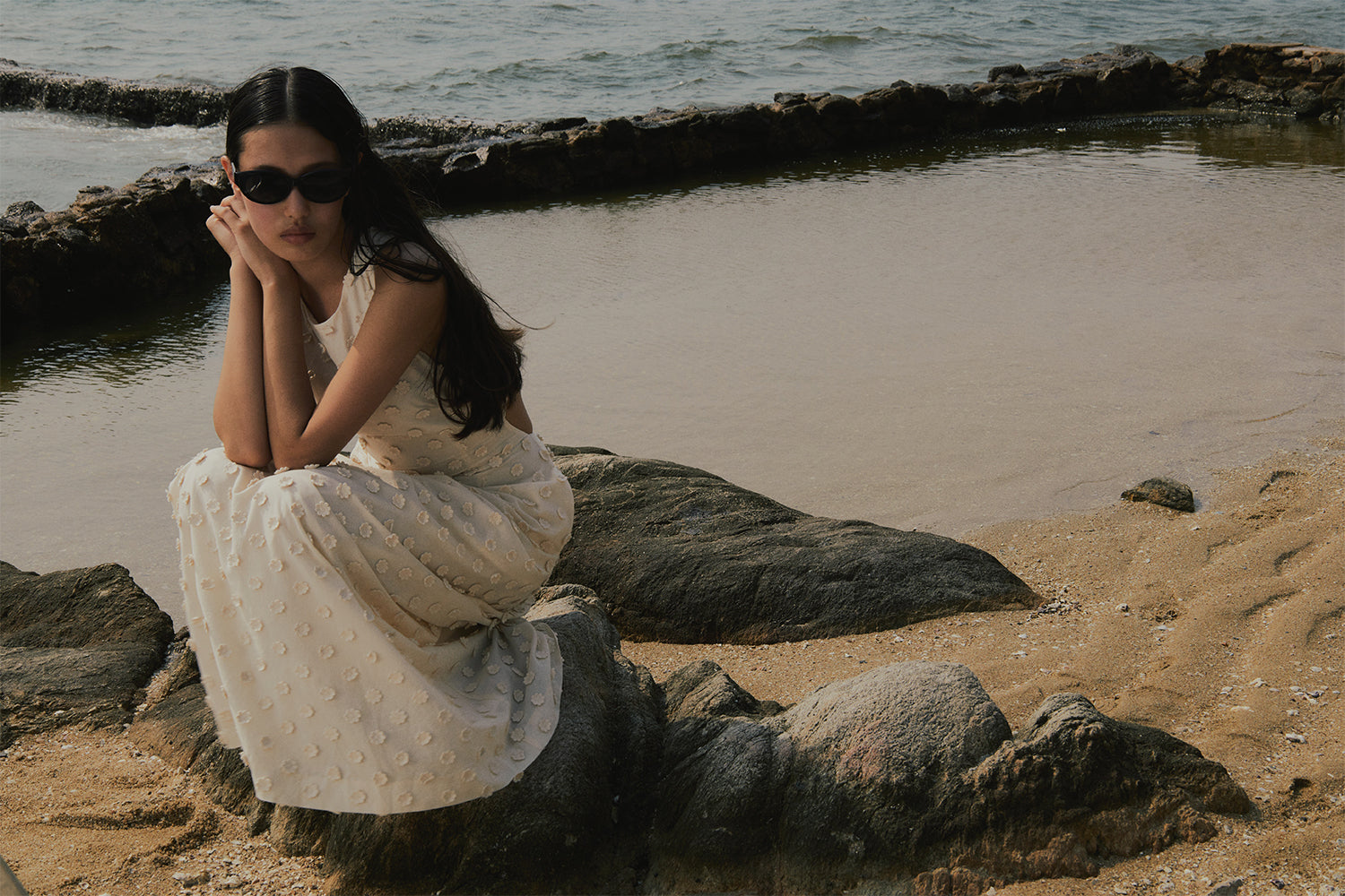 Faya Draped Dot Dress Ivory